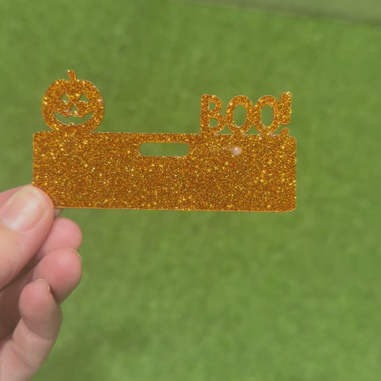 Orange Glitter Acrylic Pumpkin Halloween Badge Topper, Pumpkin With Boo! Badge Topper, Cute Fall Pumpkin Badge Topper for Name Badges